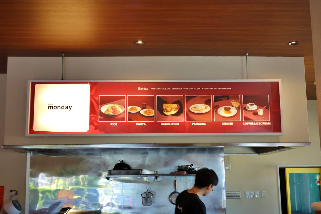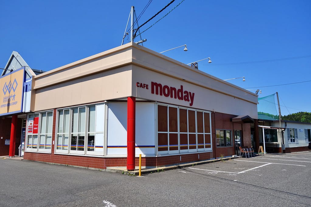 白河市明戸にあるファミリーレストラン「CAFE monday」に行ってきました。お店はGEO白河旭町店のすぐ隣にあります。