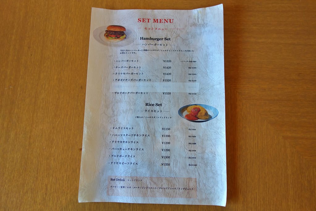 お店のメインメニューはハンバーガー。こちらはメニュー表の一部です。