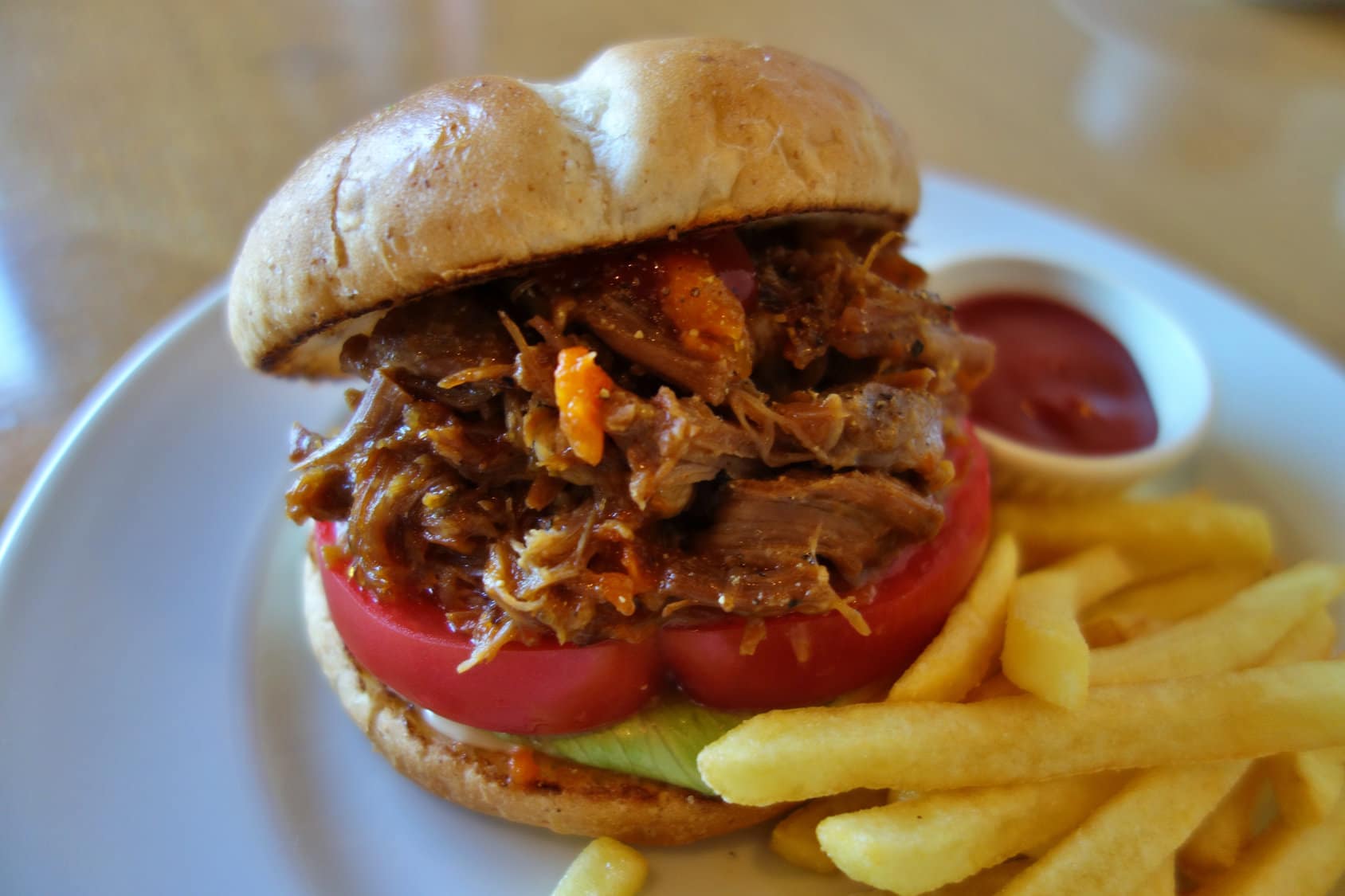 こちらのお店では、豚の肩ロース肉を塩麹とスパイスに一晩漬け、5時間煮込んでからバーベキューソースで味付けしているのだそう。