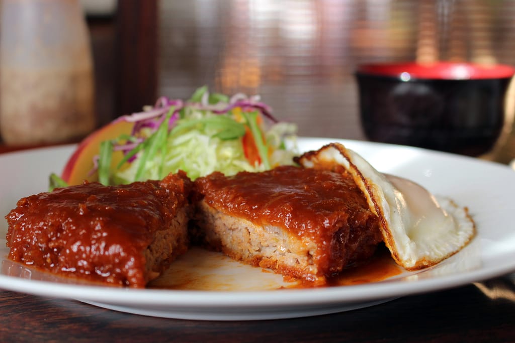 ハンバーグとの大きな違いとしては、衣をつけて揚げていることと、にんにくが効いていることがあげられます。そのため、ハンバーグよりも濃厚な味わいを楽しめます。