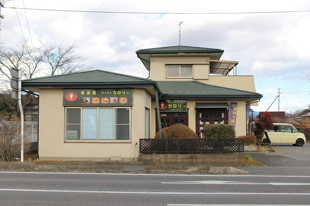 外壁に掲げられた看板には「洋食屋 キッチン カロリー」の文字。正式名称は「レストラン カロリー」とのことなので、本記事ではこちらの名称を記載しています。