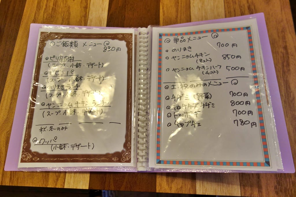 ご飯類に単品メニュー、そして土日のみのメニューもあります。