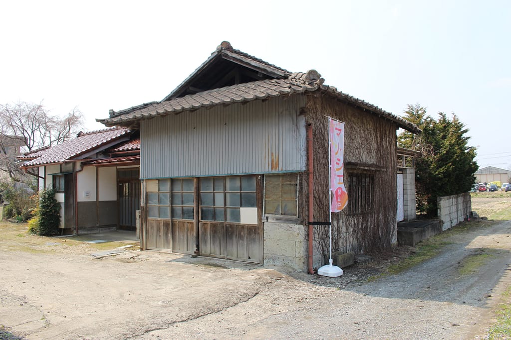 砂利敷きの道を歩いていると、「マルシェ」と書かれた一本ののぼりを見つけました。ところが、そののぼりが立っているのはごく普通の住宅。奥には立派な植木があり、道の向かいには田んぼが広がっています。遠くからは鳥の鳴き声も。
