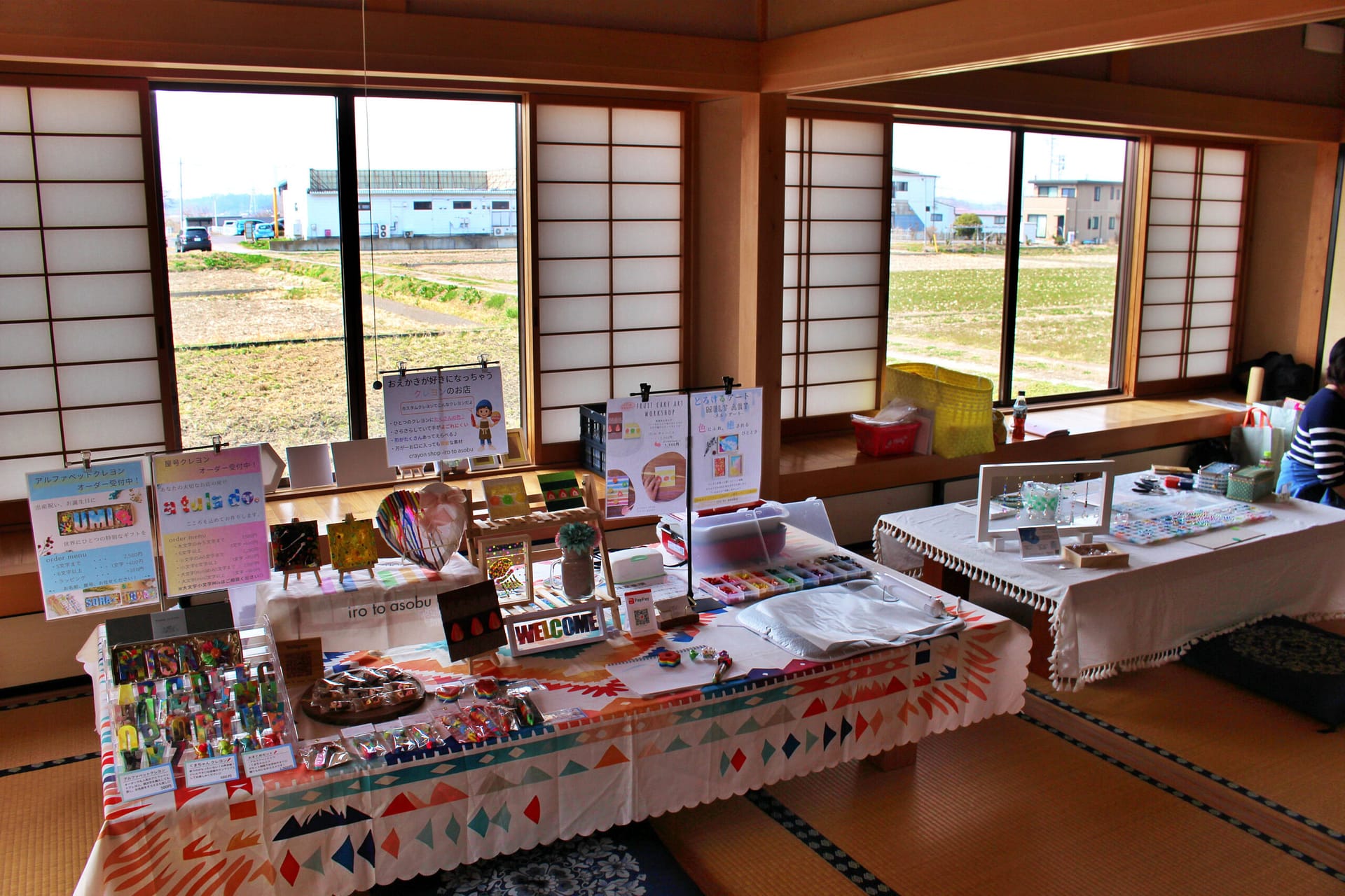 ここでは立ったまま慌ただしく買い物をする必要はありません。座布団に座って、出店者さんとゆっくり話をしながら商品を手に取ります。窓の外の田園風景もあいまって、とてものどかな時間に感じられます。