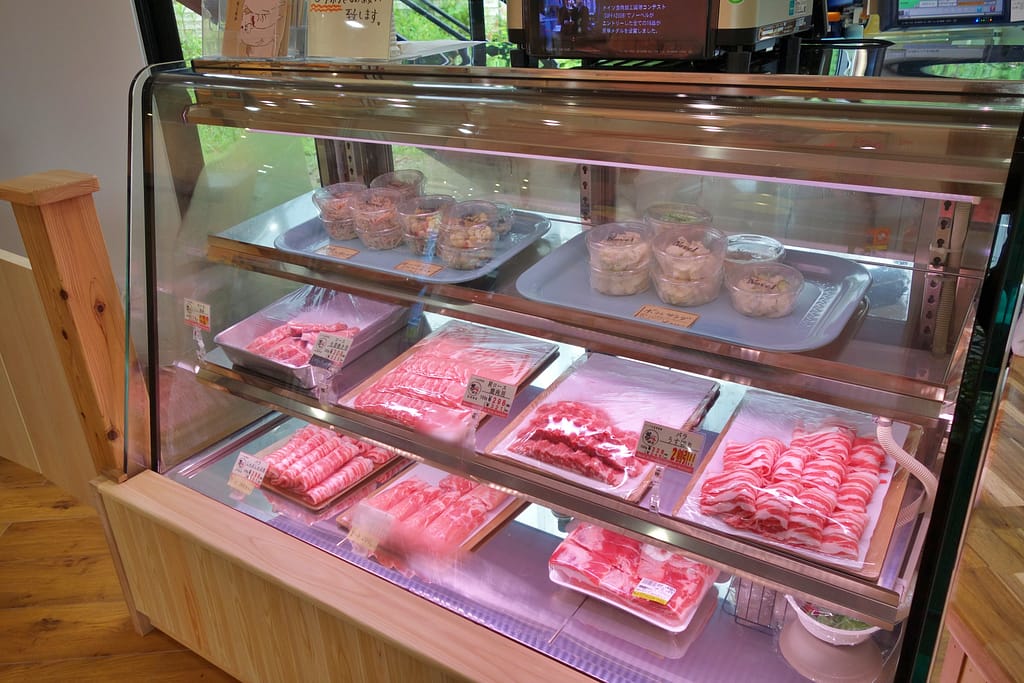 こちらのお店では、自家農場で育てたブランド豚「夢味ポーク」をさまざまな形で販売しています。