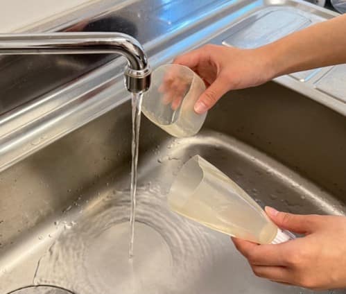 プラスチック製品が汚れている場合、水洗いして汚れを落とし、乾かしてから出します。調味料のチューブボトルなど、そのままでは洗いにくいものは、ハサミで半分に切ると洗いやすいのだそう。