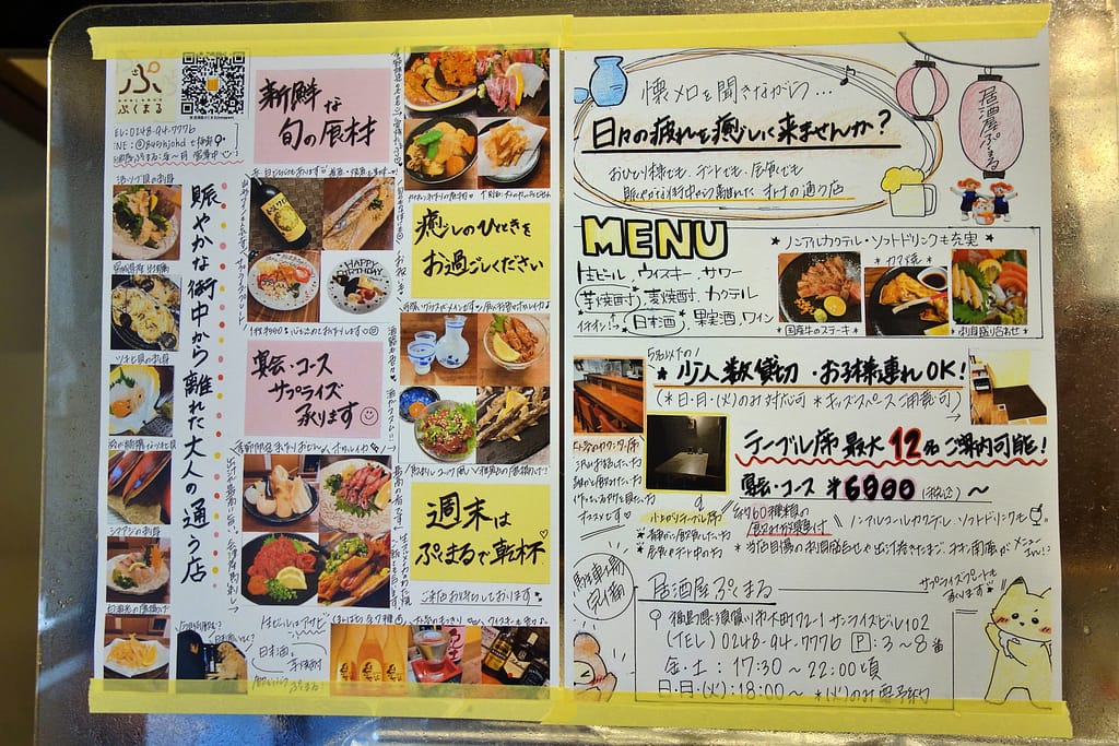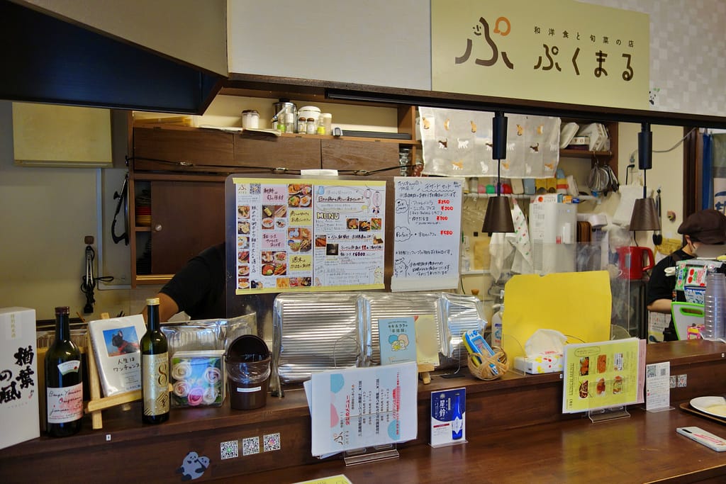 ちなみに、夜は「居酒屋 ぷくまる」として営業しているそう。カウンターとキッチンとの間に設置されたパーテーションには、おいしそうな料理やお酒の写真が並んでいます。