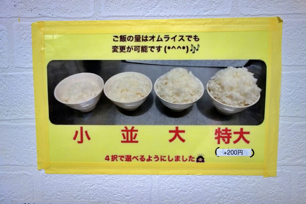 ちなみに、ご飯の量は小・中・大・特大(+税込200円)の4種類から選べます。たくさん食べたい人にも、食べきれるか心配な人にも嬉しいサービスです。