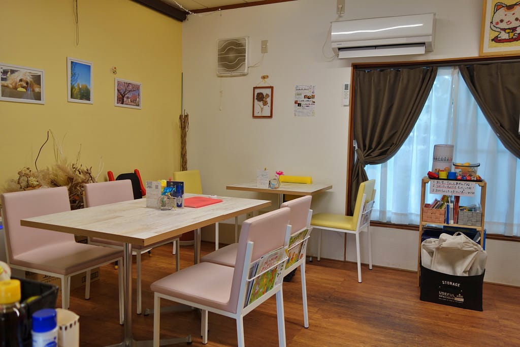 席のそばには子供用の椅子や絵本、おもちゃまで準備されています。子連れで来店してもゆっくり過ごせそうですね。