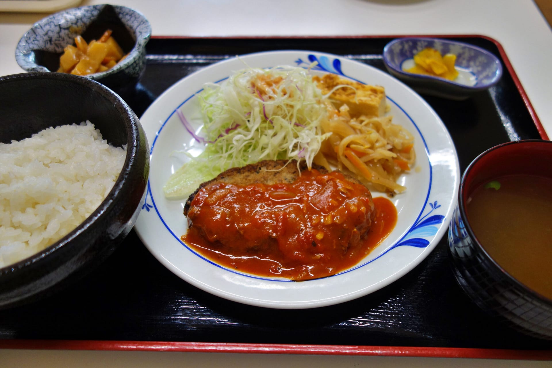 ハンバーグだけでなく、味噌汁や煮物もすっきりとした味わいで、食後も口の中が爽やかでした。