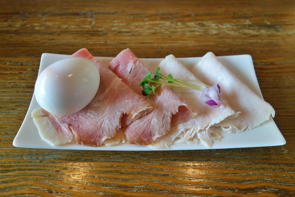 白い方は鶏チャーシュー。豚チャーシューよりもあっさりとした味わいで、上品なおいしさを楽しめました。