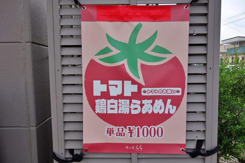 前回の訪問時にはなかった垂れ幕が増えていました。トマト味のラーメンはなじみがなく、気になります。