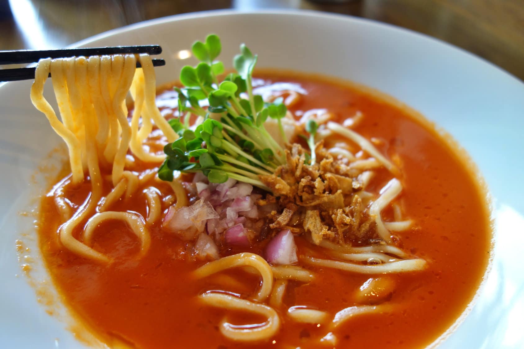 すると、小さなスプーン1杯分を入れただけで、カレーラーメンのような味にがらりと変わったのです。トマト鶏白湯スープとの相性もばっちりで、また違ったおいしさを楽しめました。
