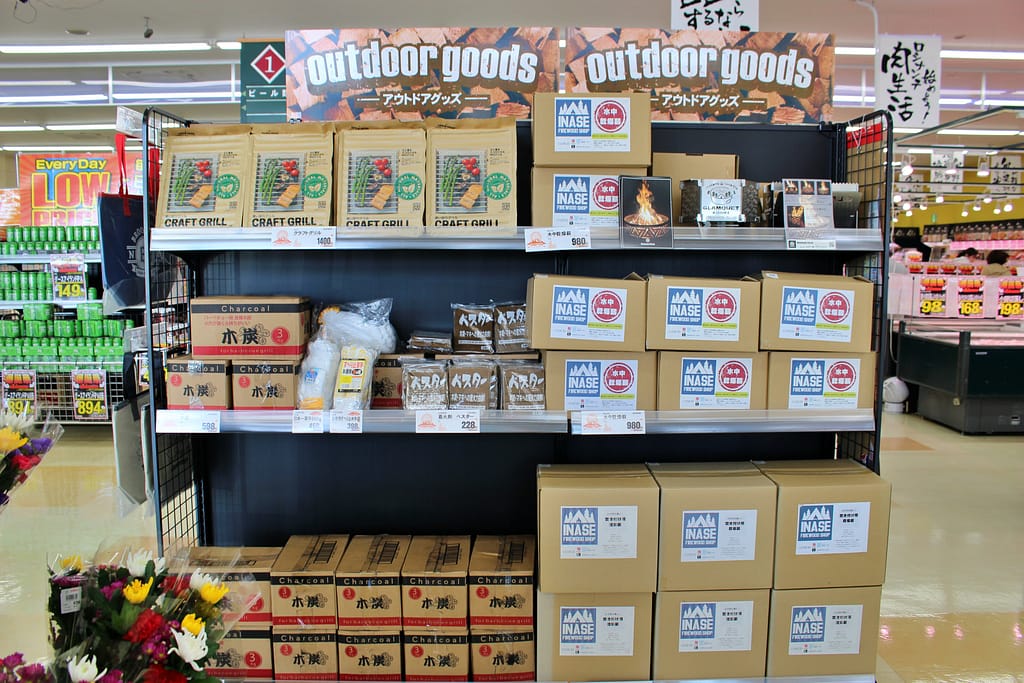つまり、BBQをするなら、このお店に来れば食材と薪や木炭などのグッズ、飲み物やおやつまで全部揃えられるのです。これは便利ですね。