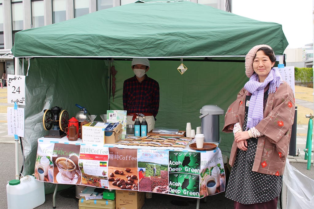 次にやってきたのは「晴時coffee」。その場で飲めるスペシャルティコーヒーやソフトドリンクのほか、コーヒー豆も販売されています。