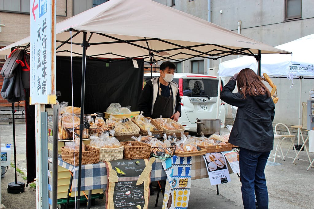 その後はブーランジェリーマルジューへ。普段は市民交流センターtetteの近くに店舗を構えているパン屋です。この日は市役所近くのテントで出店していました。
