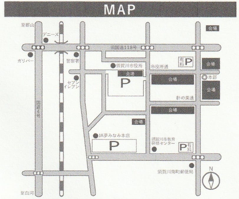 | 駐車場 | 須賀川市役所・JA夢みなみ本店ほか |