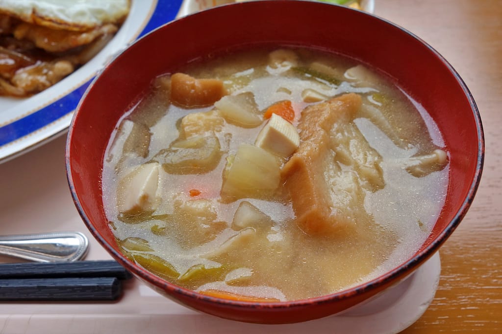 味噌汁は具だくさんで、優しい味わいです。
