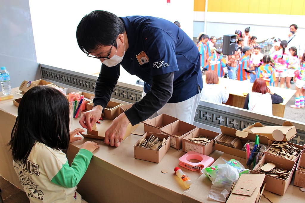 こちらでは、神田産業が「ダンボールものづくり体験」を開催しています。