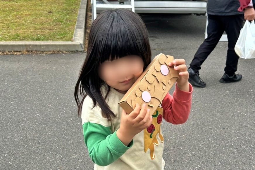 うちの娘もチャレンジしてみました。ダンボールを組み立てて形を作り、思い思いのパーツを貼り付けていきます。