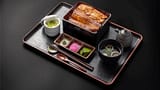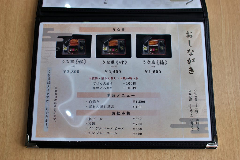 うな重(松)(税込2,800円)がやってきました。お吸い物と茶碗蒸し、そして漬物とわさびもついています。